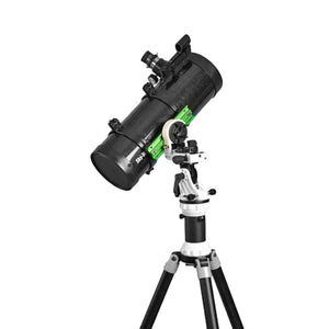 Telescopio reflector newtoniano con 114 mm de diámetro, 500 mm de distancia focal, espejo primario parabólico y una potencia óptica 360 veces superior a la del ojo humano. Está montado sobre una montura altazimutal-ecuatorial AVANT y cuenta con un trípode de aluminio de media columna con altura ajustable. Oculares Super 25 mm y Super 10 mm de 31,8 mm con buscador de punto rojo.